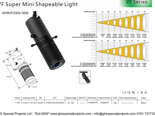 Framing Projector Spotlight MINI Zoom & Focus 3Watt