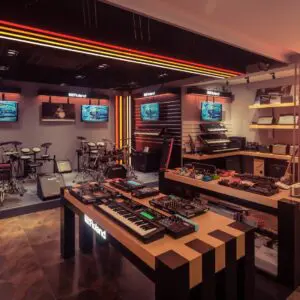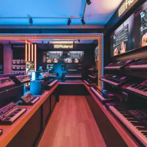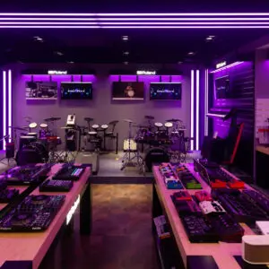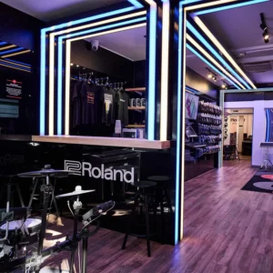 GHS Special Projects are delighted to have designed and supplied specialist light for Roland retail stores globally. The project scope was to use lighting to define different departments and to highlight their many of products within a given retail space. New Roland Showroom Opens in Iconic Central London Location. Roland Corporation, together with Outernet London, announce the opening of a brand-new Roland Store—a cutting-edge music showroom in the heart of London’s iconic Denmark Street.