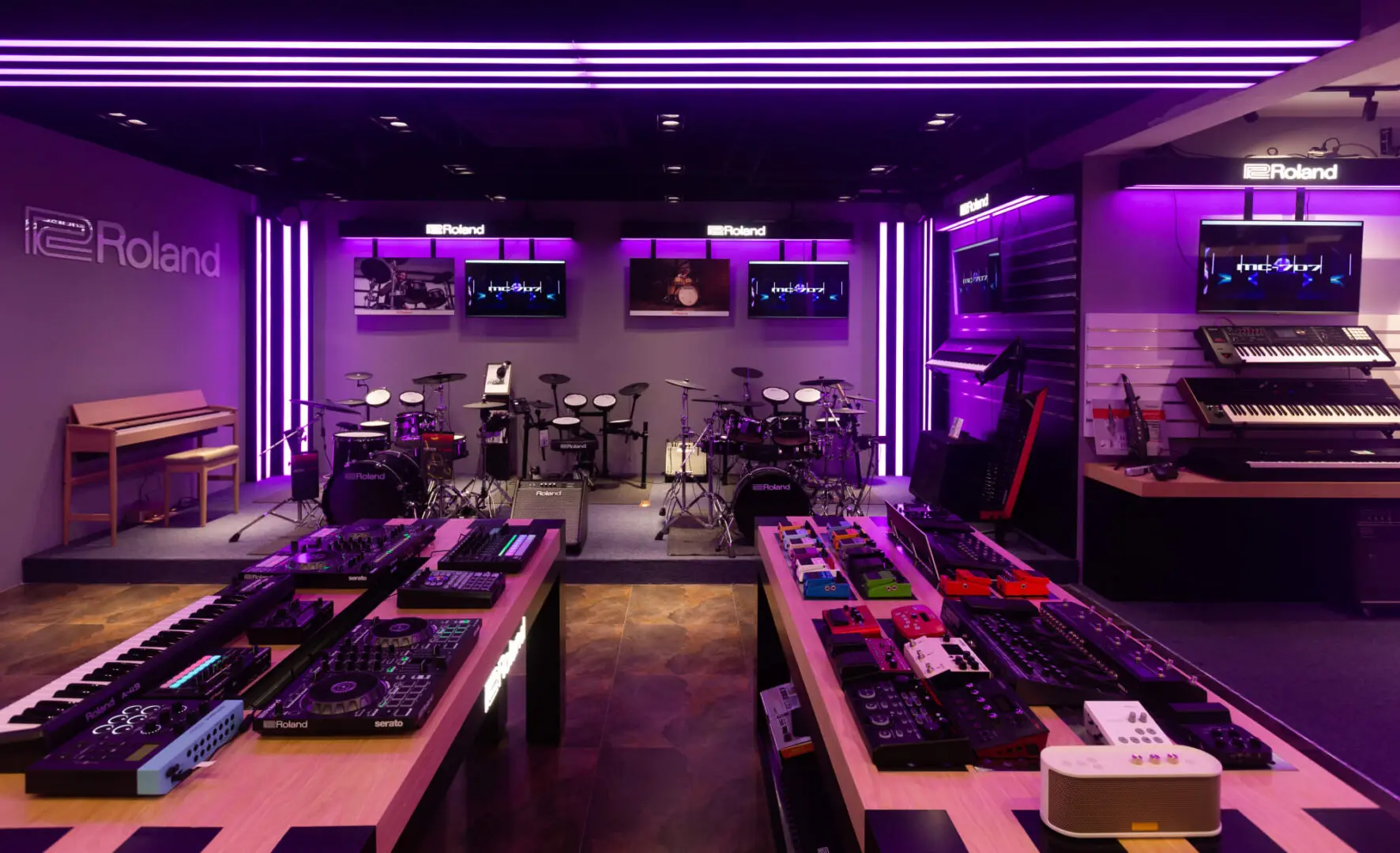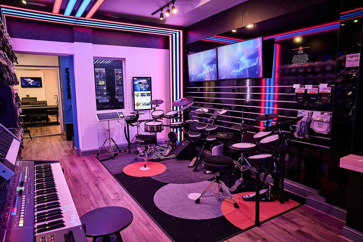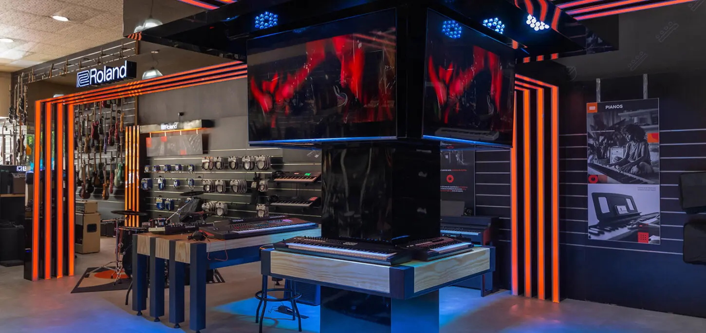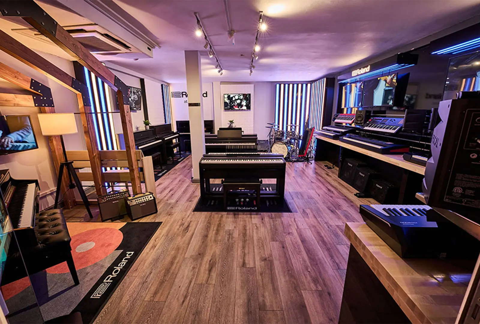 GHS Special Projects are delighted to have designed and supplied specialist light for Roland retail stores globally. The project scope was to use lighting to define different departments and to highlight their many of products within a given retail space. New Roland Showroom Opens in Iconic Central London Location. Roland Corporation, together with Outernet London, announce the opening of a brand-new Roland Store—a cutting-edge music showroom in the heart of London’s iconic Denmark Street.