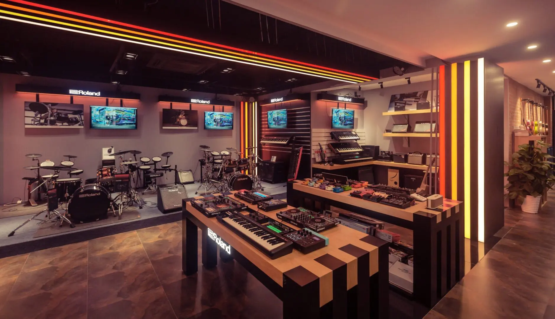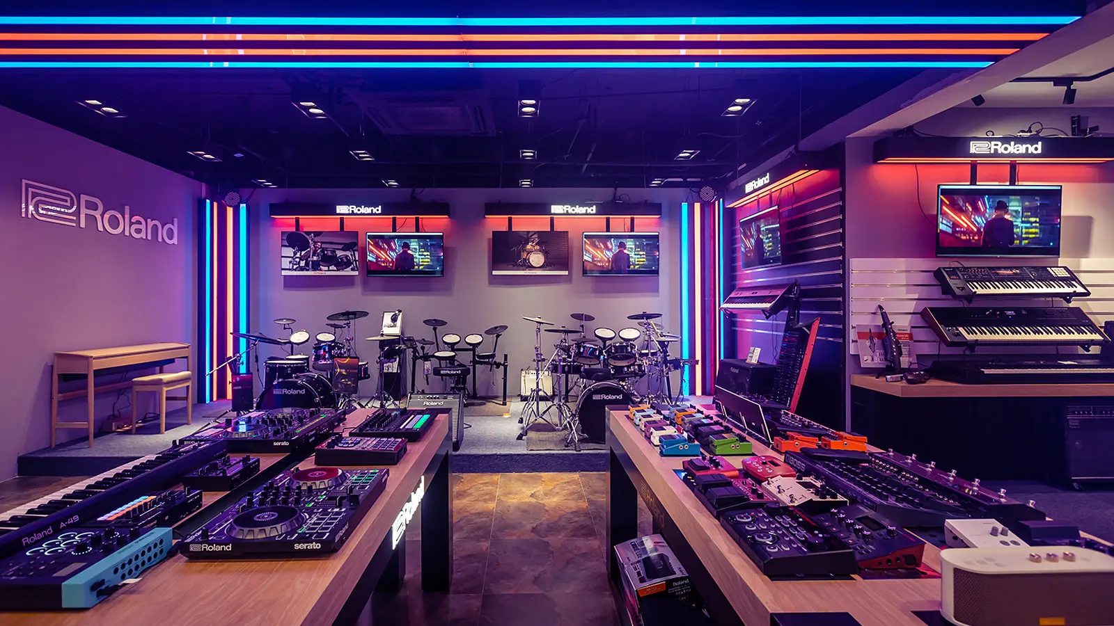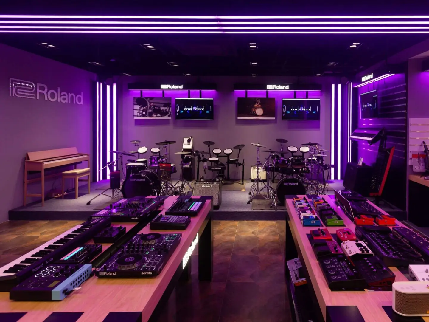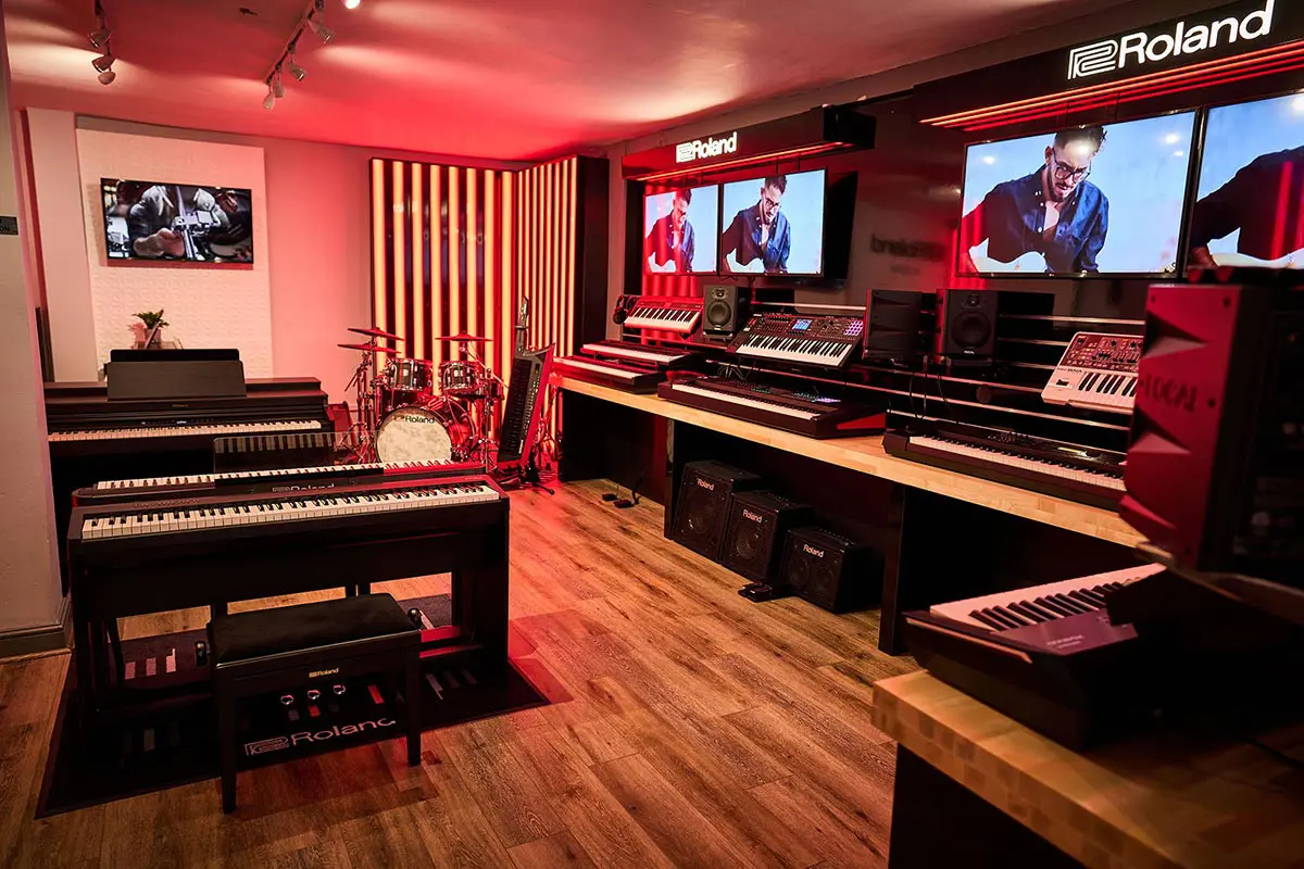 GHS Special Projects are delighted to have designed and supplied specialist light for Roland retail stores globally. The project scope was to use lighting to define different departments and to highlight their many of products within a given retail space. New Roland Showroom Opens in Iconic Central London Location. Roland Corporation, together with Outernet London, announce the opening of a brand-new Roland Store—a cutting-edge music showroom in the heart of London’s iconic Denmark Street.