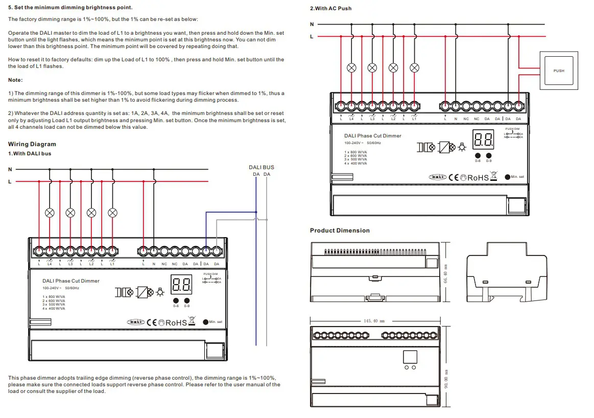 • DALI phase dimmer, trailing edge dimming