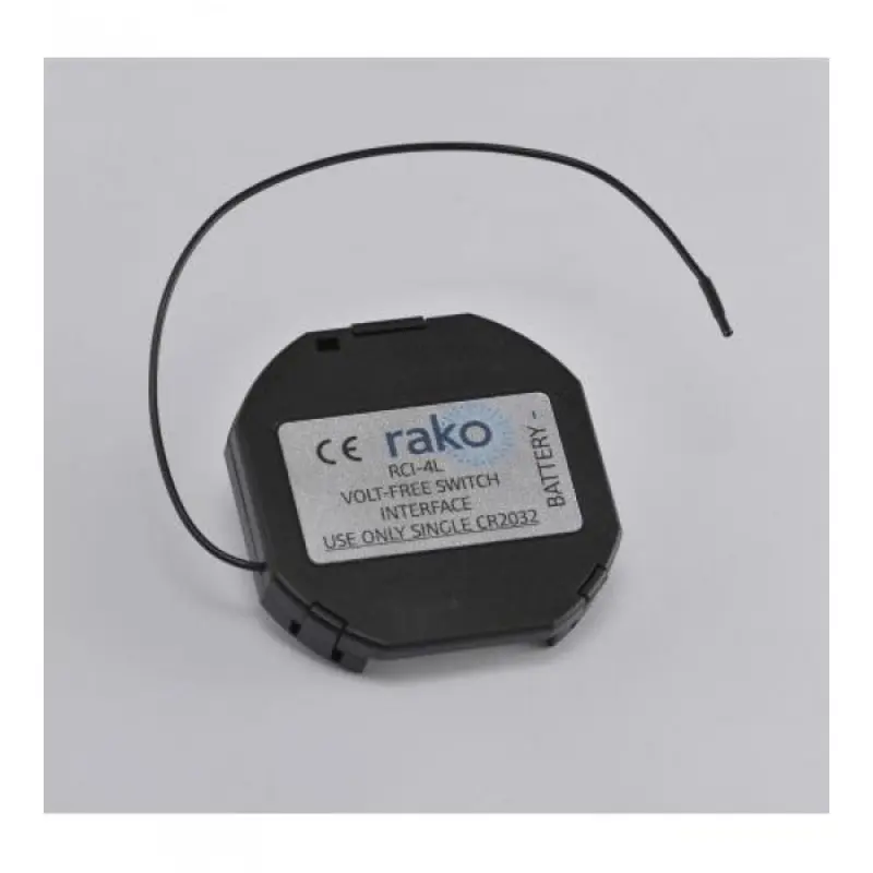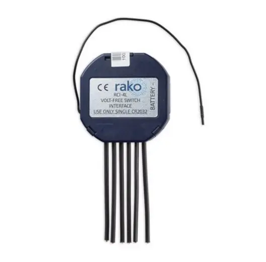 The Rako RC14L accepts up to 4 x 2 way latching volt-free switch inputs and transmits wireless Rako coded Rakom messages to other Rako wireless receiver and Bridge units.