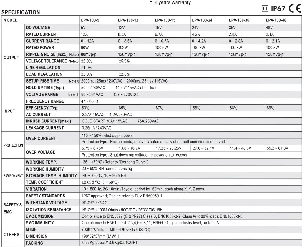 • ☑️ Surge Tolerance: 300 VAC input surge for 5 seconds (common to LPV family) :contentReference[oaicite:23]{index=23}