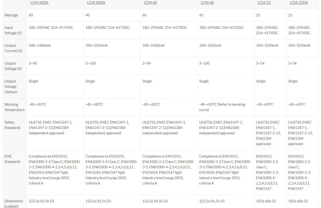 The Mean Well LCM-25 Series is a compact 25 W constant-current LED driver with selectable output currents (350 – 1050 mA) and smooth 0 – 10 V / PWM dimming. Ideal for panel, downlight, and architectural lighting, it combines high efficiency, flexibility, and trusted Mean Well reliability.