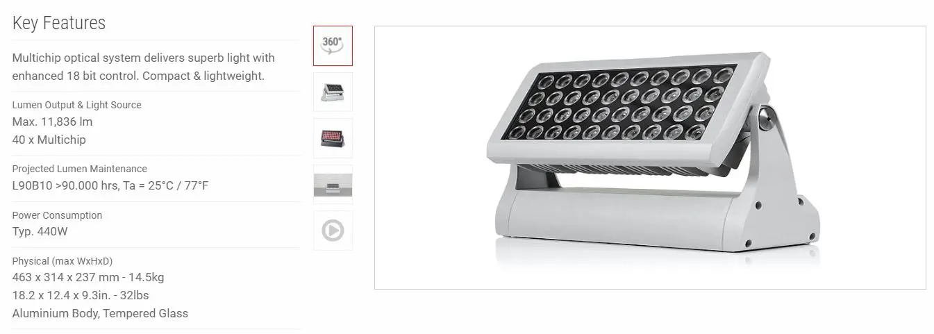Perfect for lighting large scale building exteriors and facades, due to the phenomenal light output. The Divine 160™ utilises the latest LEDs and can be configured to include optics for flood or accent lighting. The addition of  mounting options and accessories make the unit a truly flexible solution. Backed by a 5-year warranty, and an IP67 rating, it is designed to withstand the toughest weather conditions on the most demanding projects.