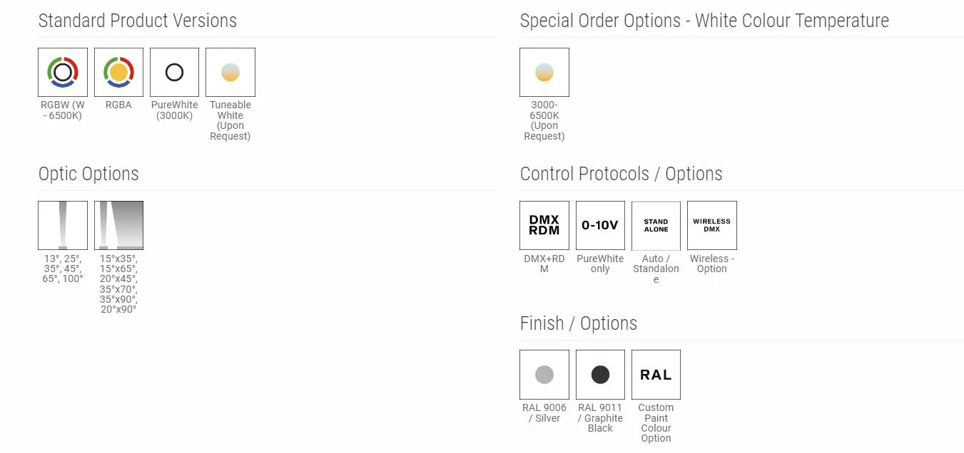 Colour Variants RGBW (W – 6500 K) | RGBA | PW (W – 3000 K) | TW (3000 – 6500 K) Upon Request