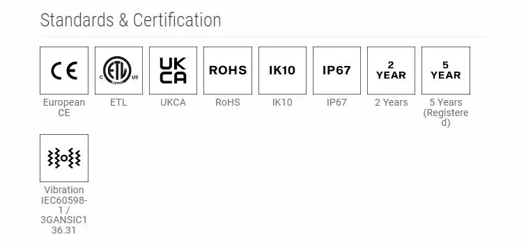 CERTIFICATION Listings ETL / cETL, CE, RoHS, UKCA