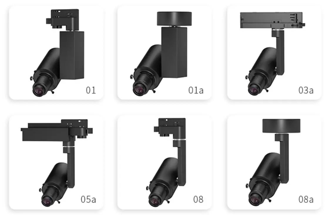 We provide a full variation of fixing adaptors for all our framing projector spotlight series, all track types (top box, side box) surface mount and recessed.
