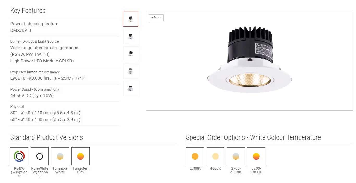 Colour Variants RGBW (W 2700 K or 4000 K) Pure White Tunable White Tungsten Dim