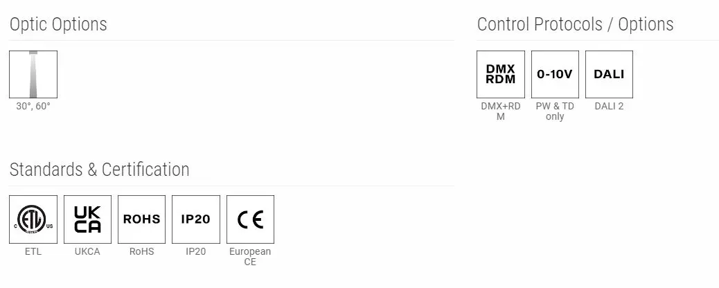 Interface Protocol USITT DMX512, RDM, DALI 2, 0-10 V