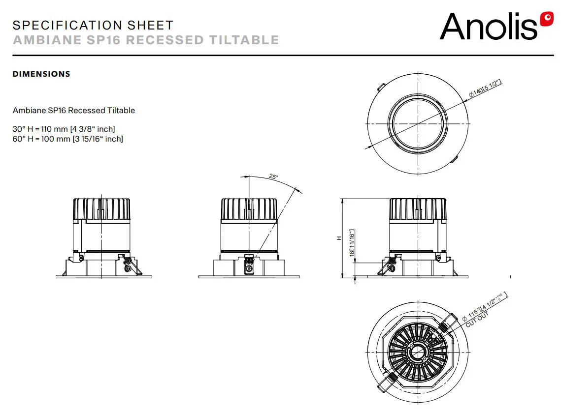 ANOLIS Ambiane™ SP16 Recessed Tiltable