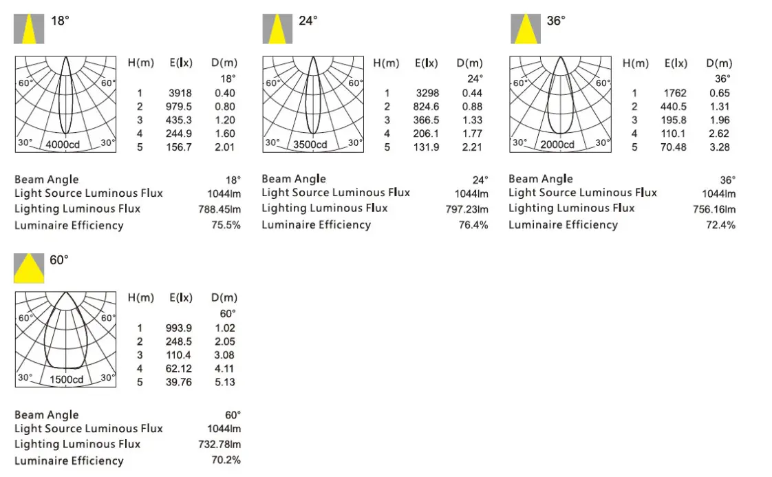 - ✅ Beam angles: 18°, 24°, 36° 60° for precise lighting control and placement