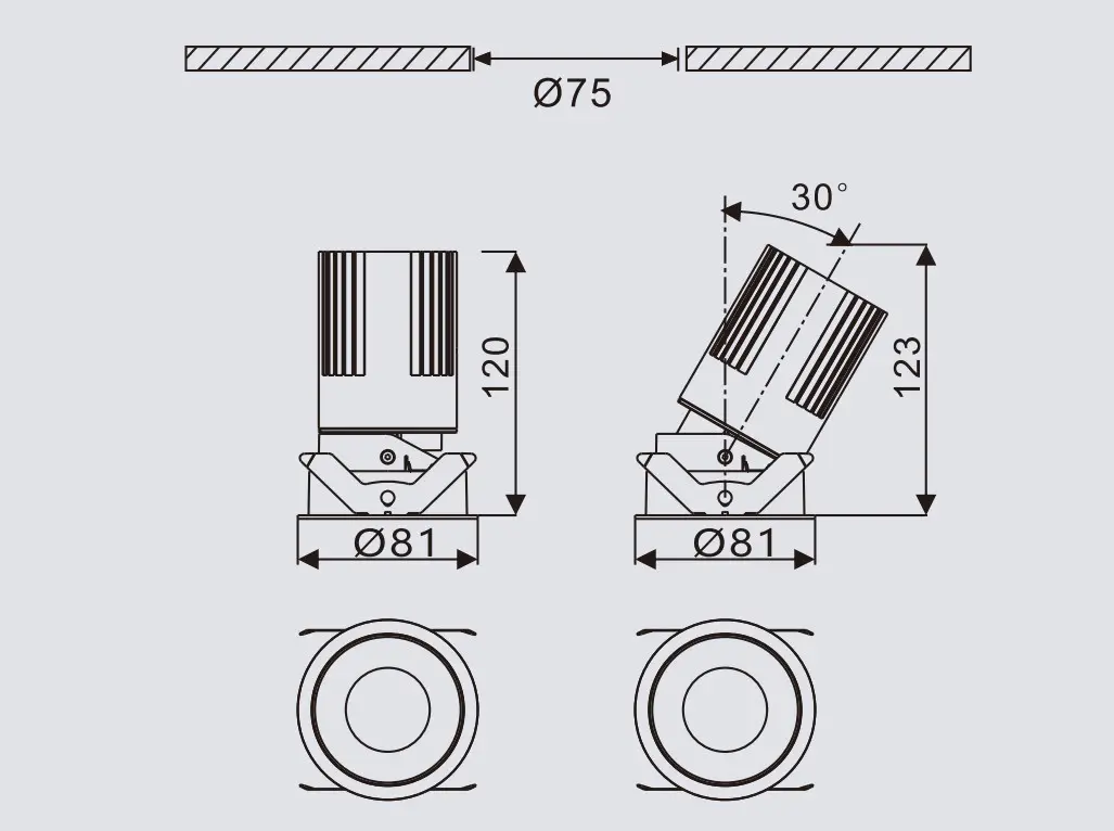 - ☑️ Mounting: Ceiling recessed downlight