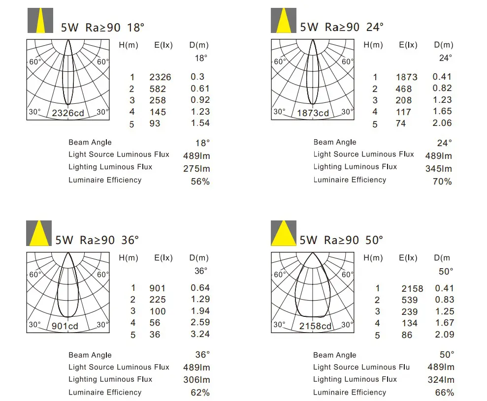 - ☑️ Beam Angles: 18°, 24°, 36°, 50°