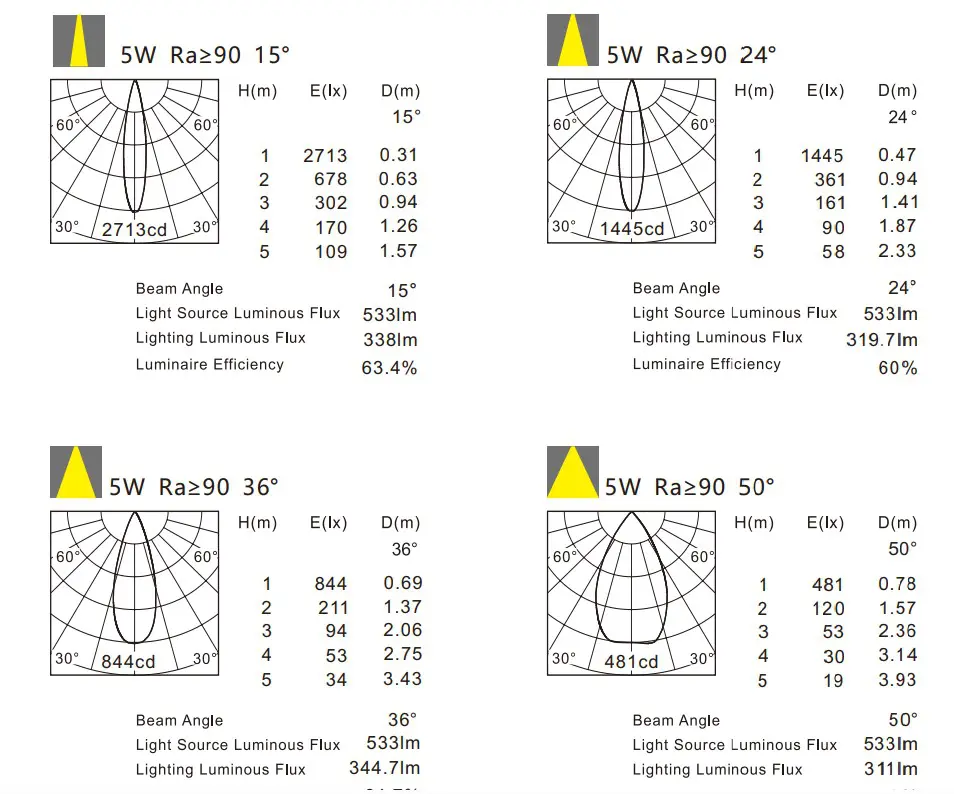 - ☑️ Beam Angles: 15°, 24°, 36° 50°