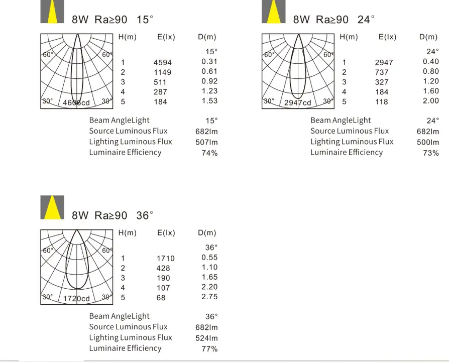 - ✅ Beam angles: 15°, 24°, 36° for precise lighting control and placement