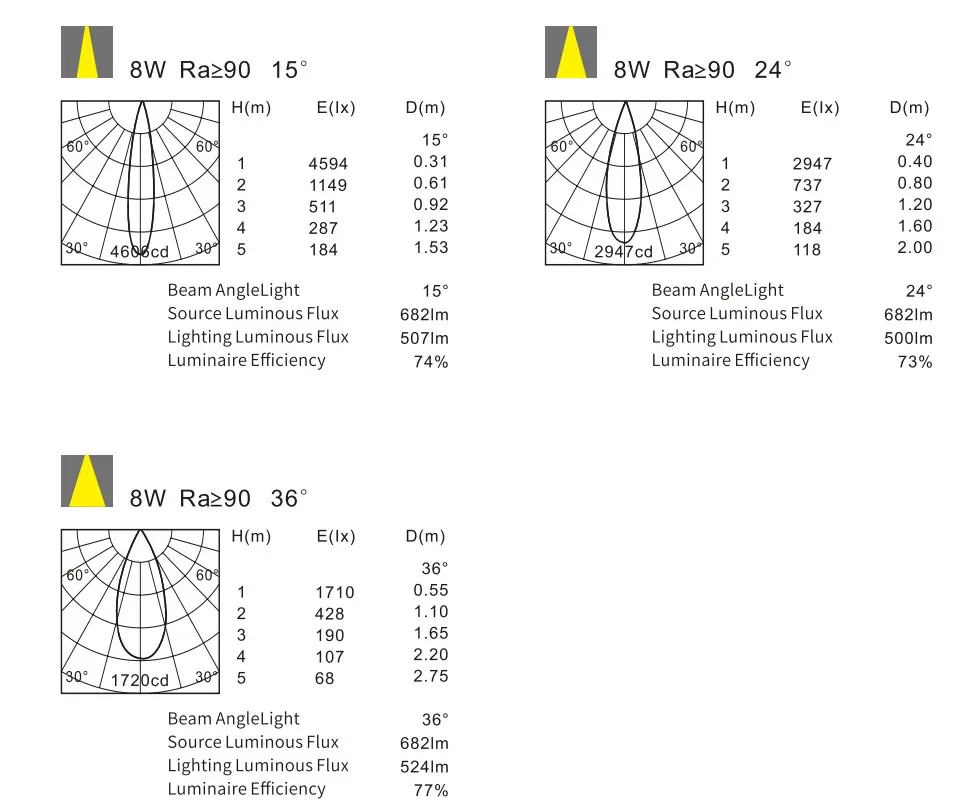 - ✅ Beam angles: 15°, 24°, 36° for precise lighting control and placement