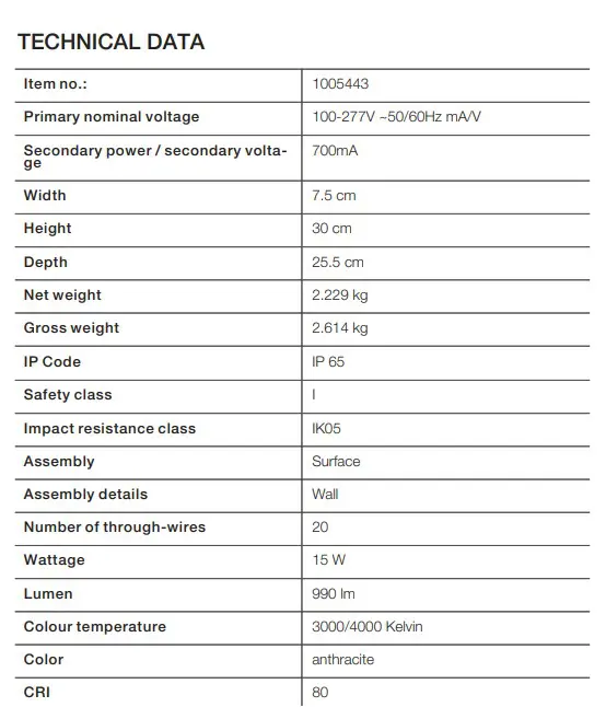 The BOOKAT is an unusual outdoor wall-mounted light for a special effect and in the colour anthracite. This has a permanently installed light source and can be changed between 3,000 and 4,000 Kelvin by means of a CCT switch. The IP65 protection class makes it ideal for outdoor use. The BOOKAT family includes a wall light. The poles can be used universally due to the open cable end.