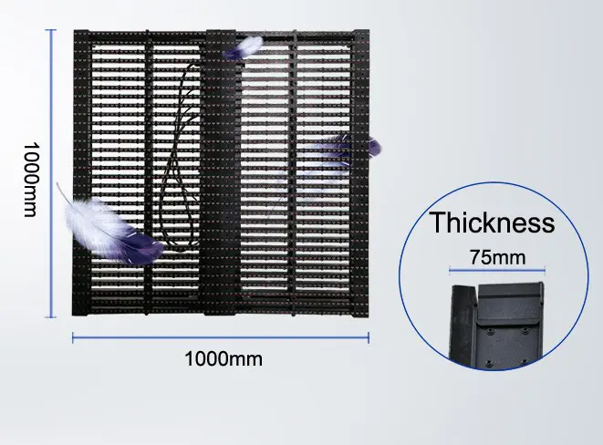 This LED display cabinet, with a standard size of 1000*1000mm and a sleek thickness of just 75mm, redefine ease of installation. Experience the future of display technology with cabinets that are not only thinner but also remarkably simpler to set up, ensuring a seamless and efficient installation process.
