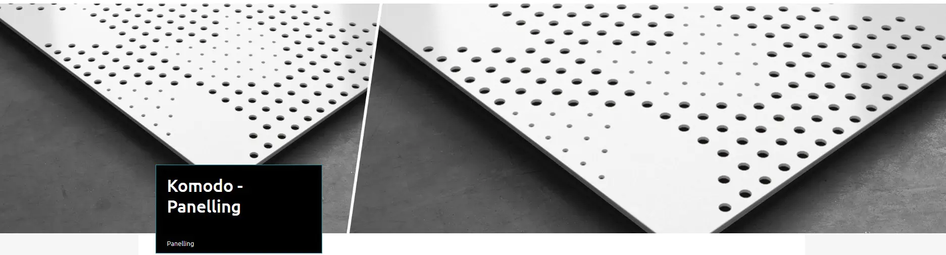 – Komodo – 9% Perforated Panelling – creating distinctive continuous designs that fit perfectly into any environment. Besides stunning visuals, Komodo is a very efficient acoustic tool, perfect for absorbing mid-range frequencies and providing effective diffusion and scattering over a large frequency range. Recycled PET
