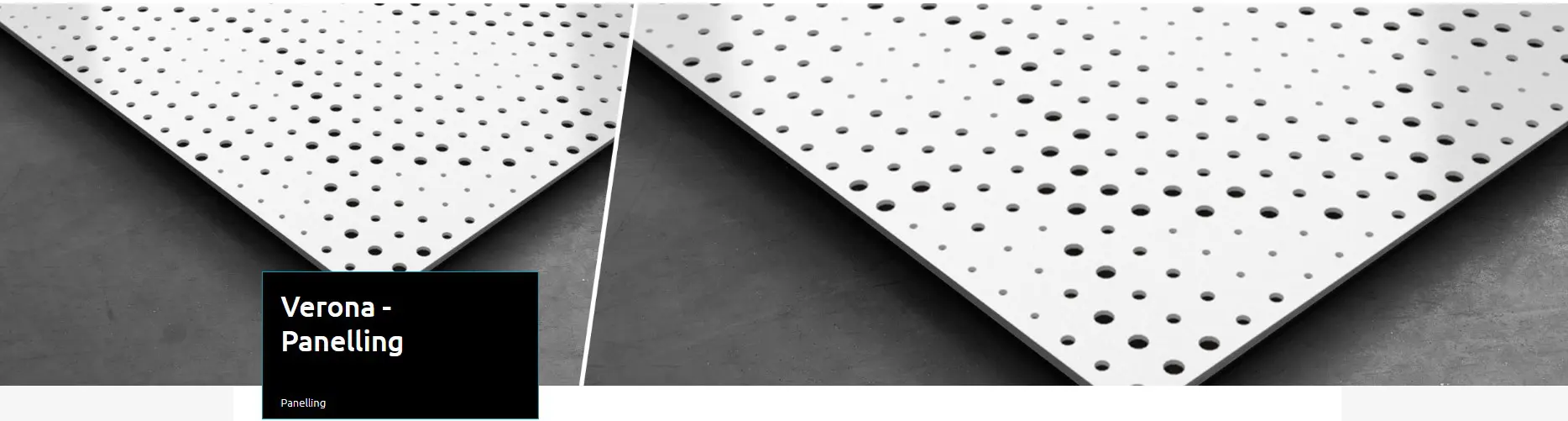 – Verona – 8% Perforated Panelling – bold and modern design . This unique look was conceived to be arranged in multiple mesmerising patters that can easily fit in any office, meeting or conference rooms or even in big venues like auditoriums or shopping malls. These features associated with its very efficient mid frequency absorption and the ease of its direct screw fixing system make Verona a very desirable tool to solve everyday acoustic problems.