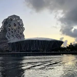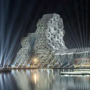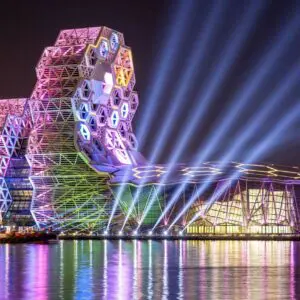 The Taipei Music Center is a performing arts and cultural venue in Nangang District, Taipei, Taiwan, including a 5,000-seat concert hall, cultural hall and creative production facilities.